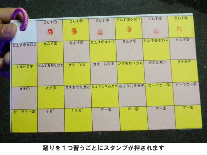 小学生のわ組のみんなには、今年もスタンプカードが配られています。いくつもあるわ組の踊りを1つ習うごとにスタンプが押されていきます。