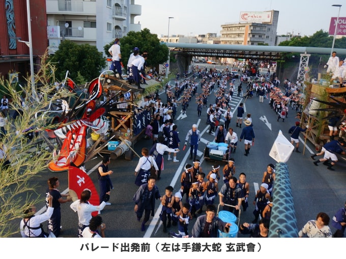 大集合パレードの見どころは時間中2回行われる全山競演です。1回目は18時45分~で2回目は20時15分から予定されています。特に1回目は全13の大蛇が一堂に集まって花火を打つので、こちらはかなり見ごたえのある光景になります。