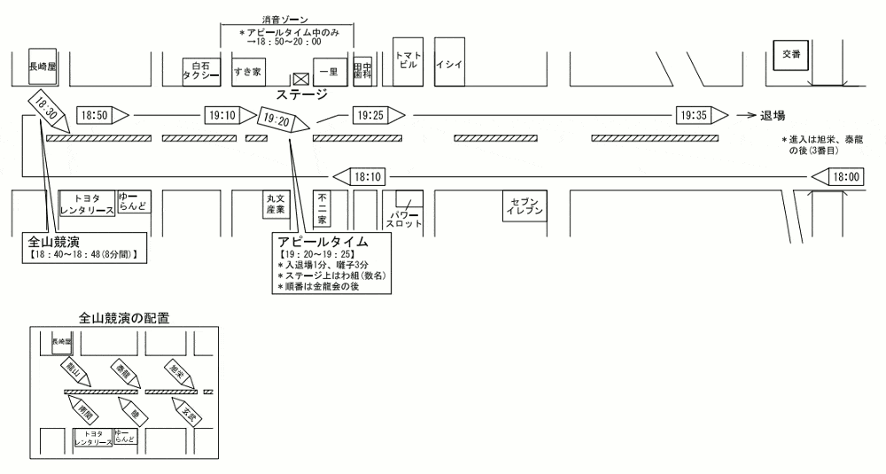 *ステージ前でのアピールタイムは19時20分~(金龍会の後)の予定です。